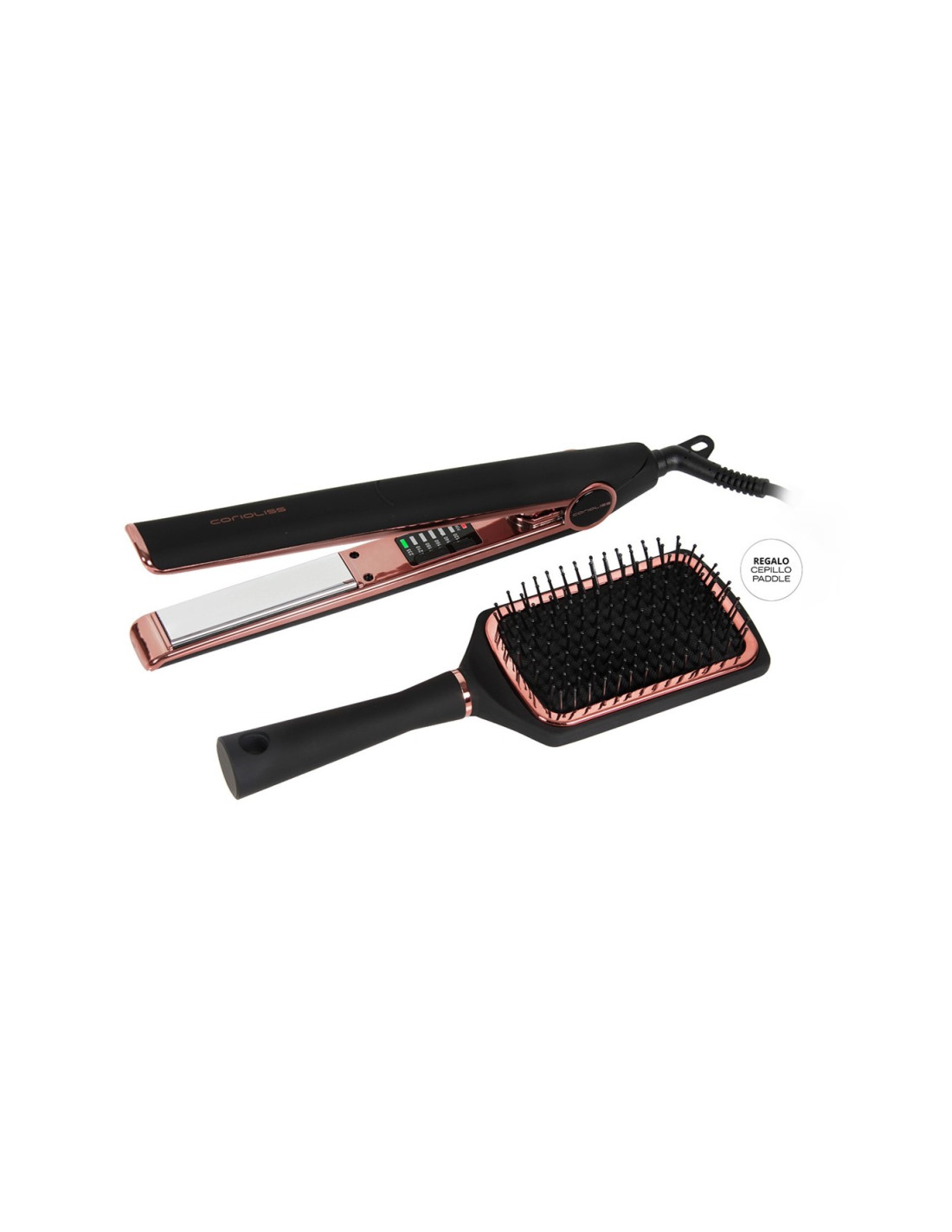 La plancha C1 es una herramienta ideada para el salón. Con un diseño práctico y atractivo, es muy fácil de utilizar y logra unos resultados espectaculares junto al cepillo Paddle Corioliss Black Copper.