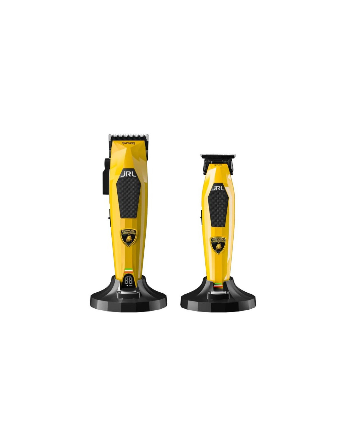 El dúo más potente del mercado ya está aquí. Descubre el kit JRL x Lamborghini color amarillo, una edición limitada que combina precisión, potencia y diseño de alto rendimiento. Incluye clipper y trimmer profesionales con motor digital, batería de larga duración y estética inspirada en el mundo del motor. Tecnología premium pensada para barberos exigentes.