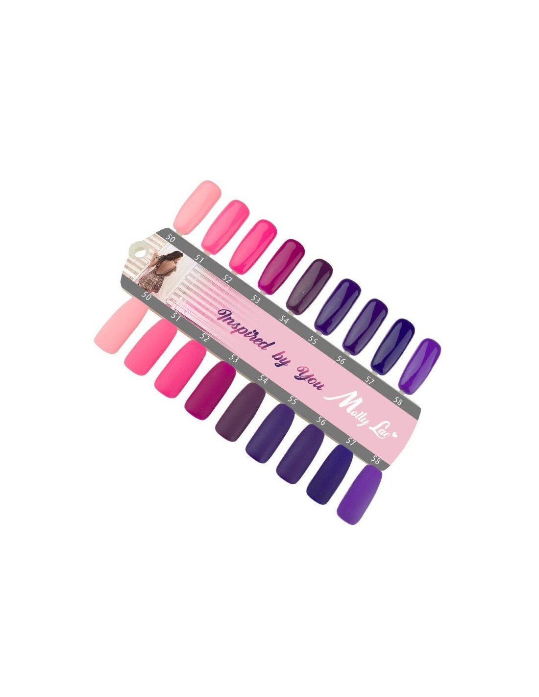 Hemos creado una colección de 9 barnices híbridos Molly Lac en delicados tonos rosa y púrpuras fuertes que agregarán carácter a tus diseños.