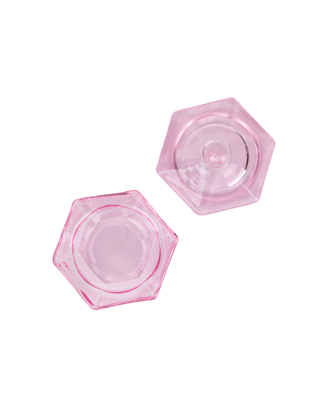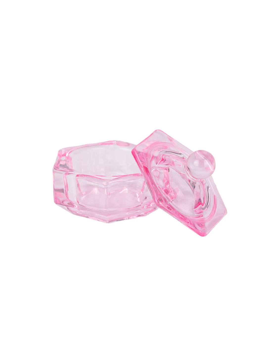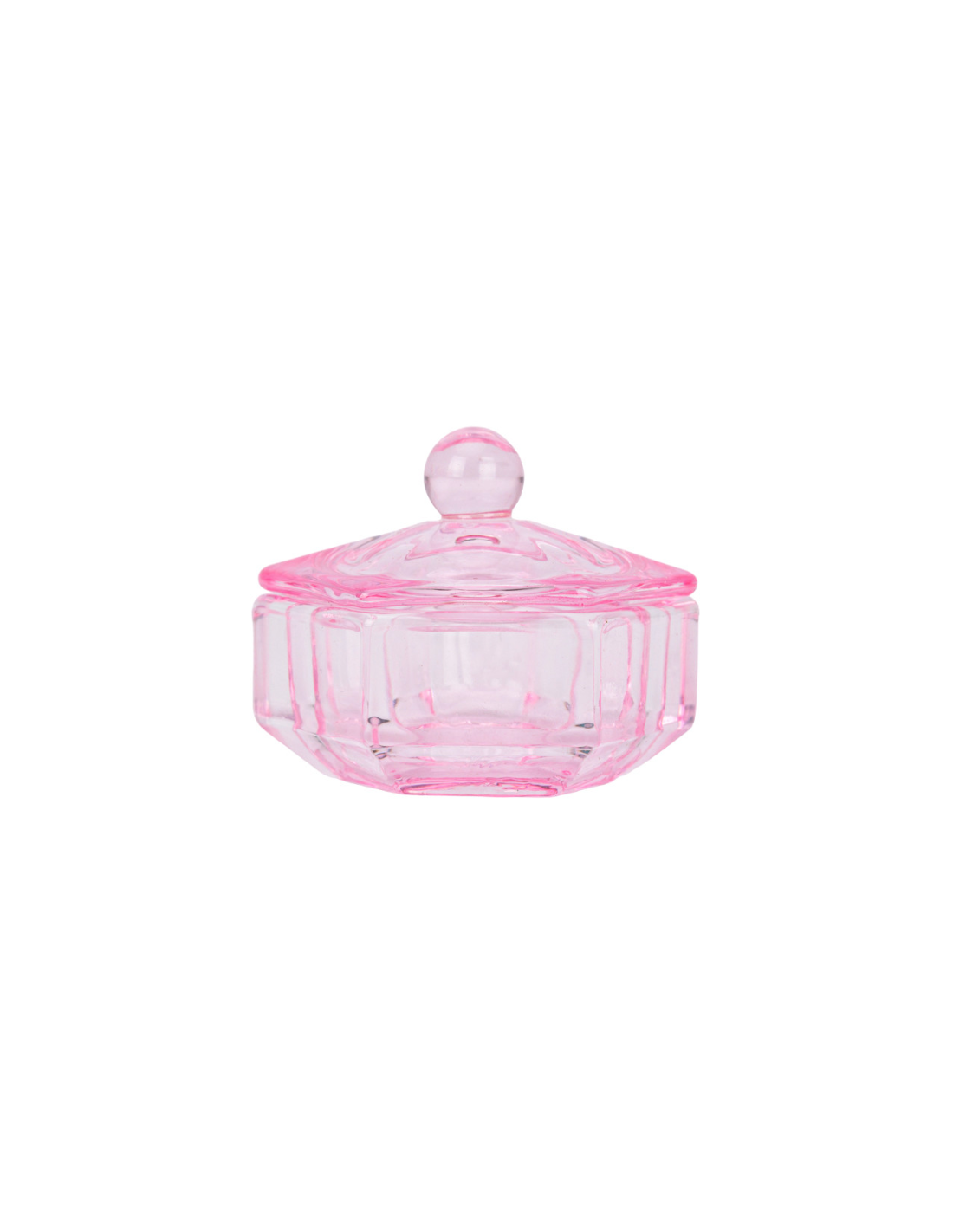 Vasito de cristal rosa con tapa ideal para mezclar gel, acrílico, monómeros o barniz.