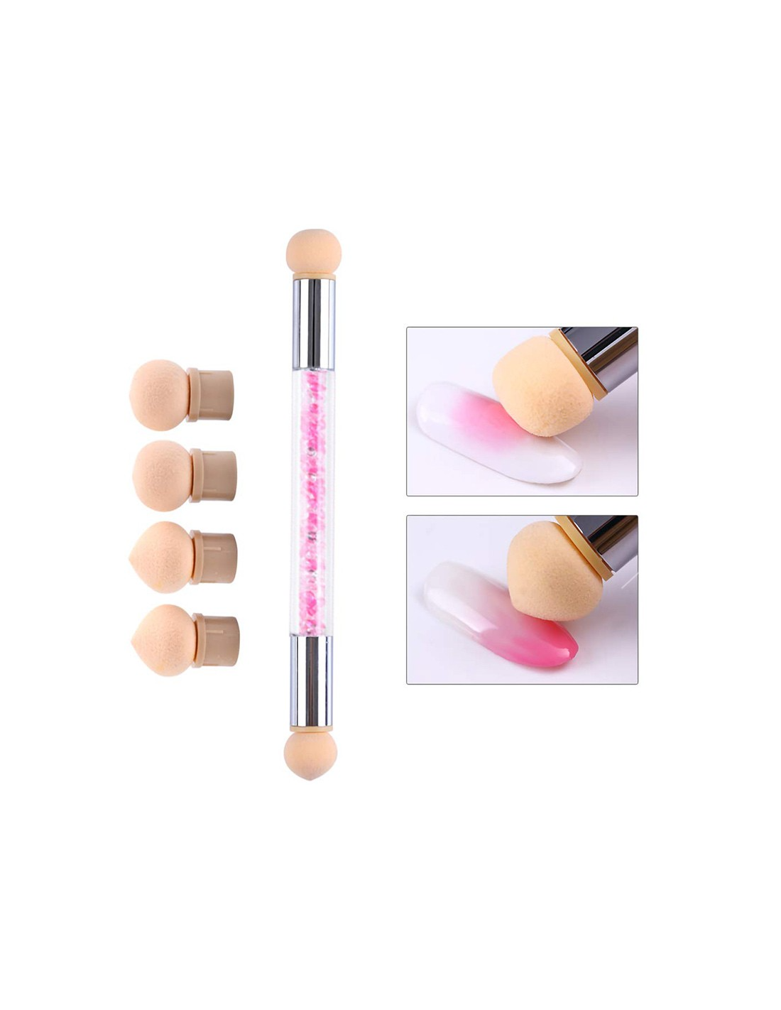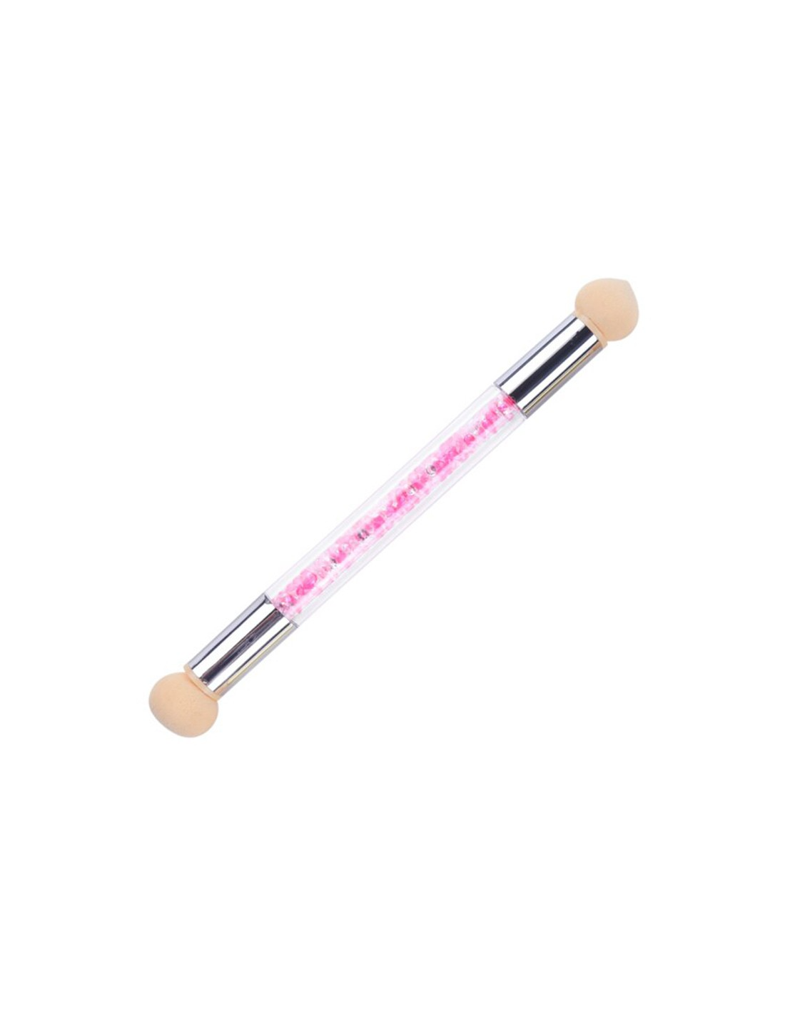 El pincel tiene una esponja en cada extremo: una redonda y otra en punta.
